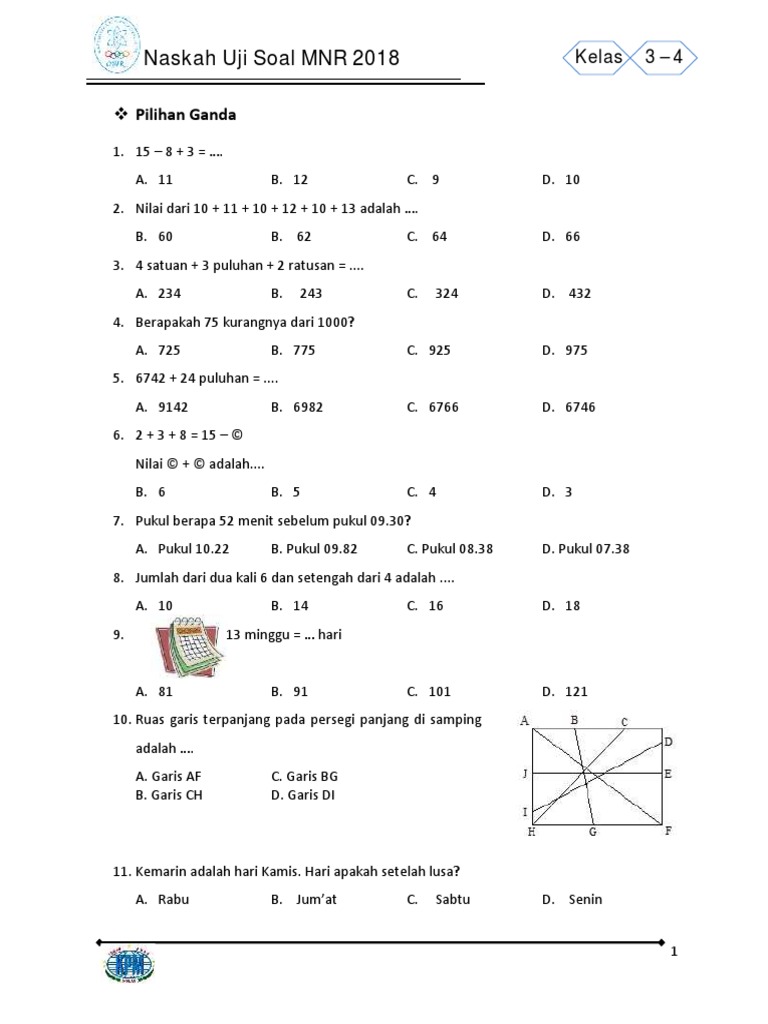 Salah satu metode efektif untuk mengukur dan memperdalam pemahaman siswa terhadap materi yang telah diajarkan adalah melalui latihan uji soal. Khususnya dalam konteks olimpiade matematika seperti Mathematics and Nature Race (MNR), latihan uji soal bukan sekadar menguji ingatan, melainkan melatih kemampuan berpikir kritis, kreativitas, dan penerapan konsep dalam situasi yang beragam. Artikel ini akan membahas secara mendalam mengenai pentingnya latihan uji soal MNR untuk siswa kelas 3 dan 4, serta memberikan panduan praktis untuk memaksimalkannya.